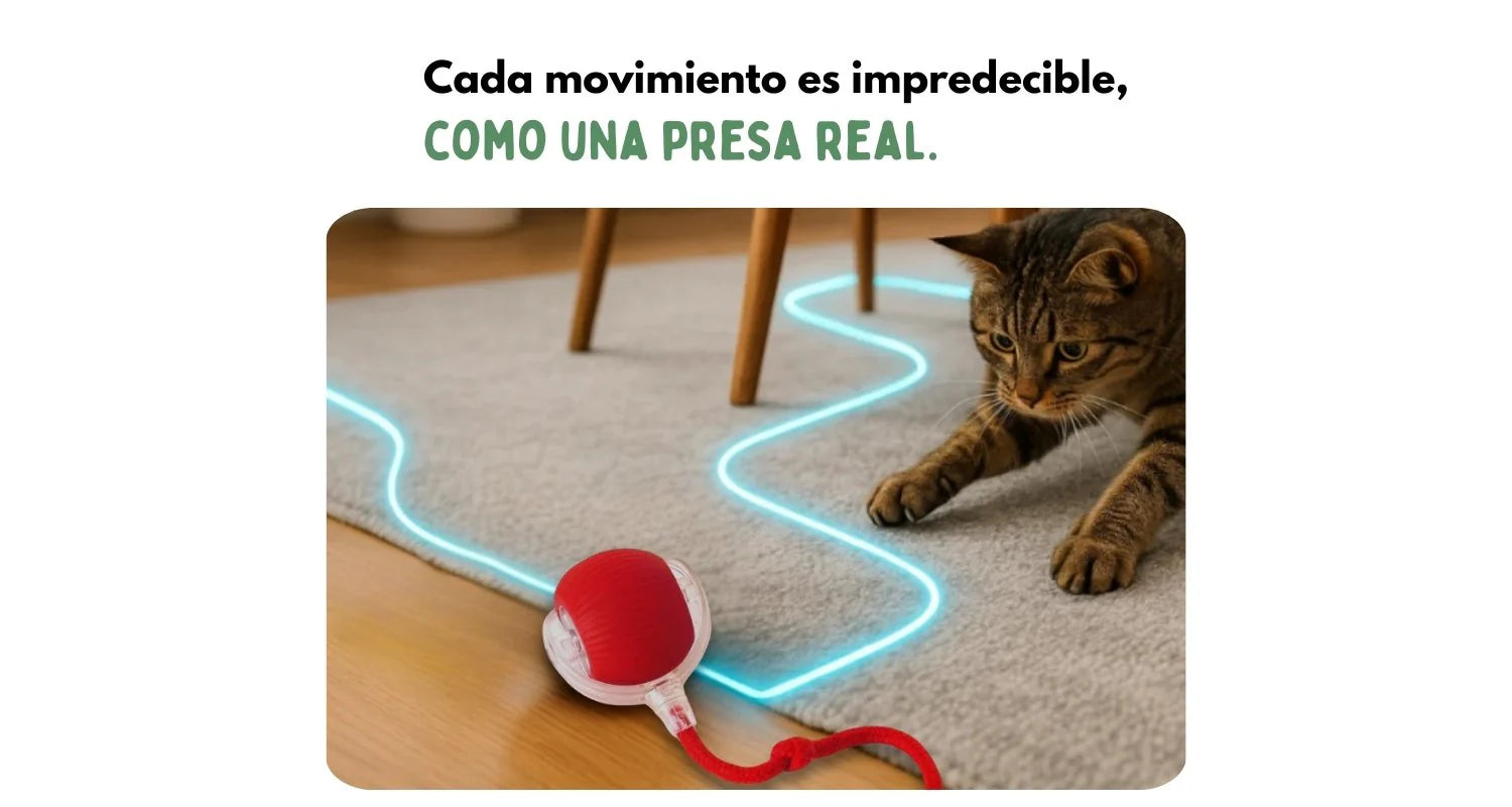 No, PelotaViva™ tiene 3 modos diferentes (rápido, lento, interactivo) que mantienen a tu gato estimulado y entretenido.